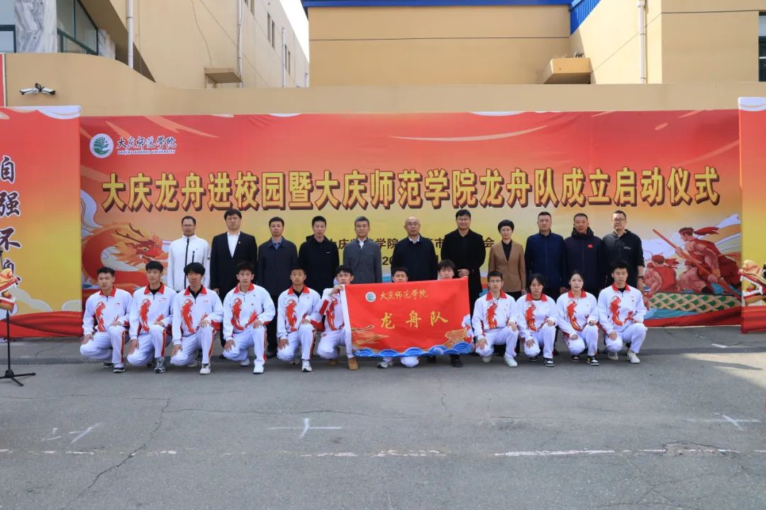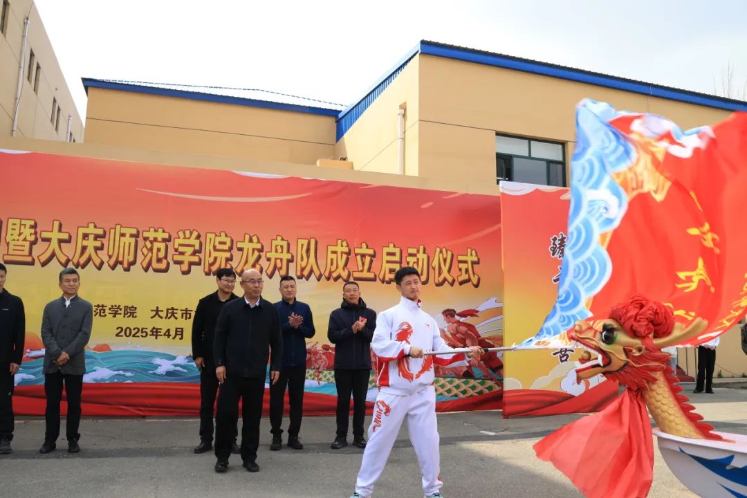 为弘扬中华优秀传统文化,丰富校园体育生活,学校于2025年4月23日举行大庆龙舟进校园暨太阳成集团tyc234cc官网龙舟队成立启动仪式。太阳成集团tyc234cc官网副校长周丹、大庆市体育局副局长王海涛、大庆市龙舟协会会长张利国、大庆市龙舟协会副会长杨国华、东北石油大学体育部副部长张伟、龙舟队全体队员及师生代表共同见证这一重要时刻,此次活动标志着学校传统体育文化建设迈上新台阶。