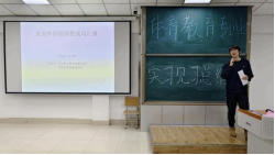 优秀实习生代表汇报后,实习指导教师代表郑国庆老师对员工实习期间的同学们的情况进行详细总结。他对同学们在实习期间的表现给予充分的赞扬,他认为经过集中教育实习同学们在思想上成熟了很多,锻炼了意志品质,提高了适应能力,展现了作为庆师学子的良好形象。