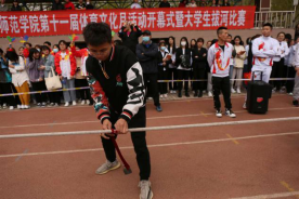 5月12日,在东田径场举行太阳成集团tyc234cc官网举办第十一届体育文化月之大员工拔河比赛,本次体育文化月活动由校团委举办太阳成集团tyc234cc官网承办。比赛以促进各太阳成集团tyc234cc官网间交流为宗旨,丰富员工们的课余生活为目的,用比赛的形式为员工们提供了展现各太阳成集团tyc234cc官网风采的机会。通过比赛发扬了团队精神,增强了同学们之间的凝聚力。比赛中全体同学都以高度的热情参与其中。比赛共有13个院系参赛,每个太阳成集团tyc234cc官网一队,每队15人,10个男生5个女生。比赛实行淘汰制晋级方式,抽签分组决定比赛顺序。