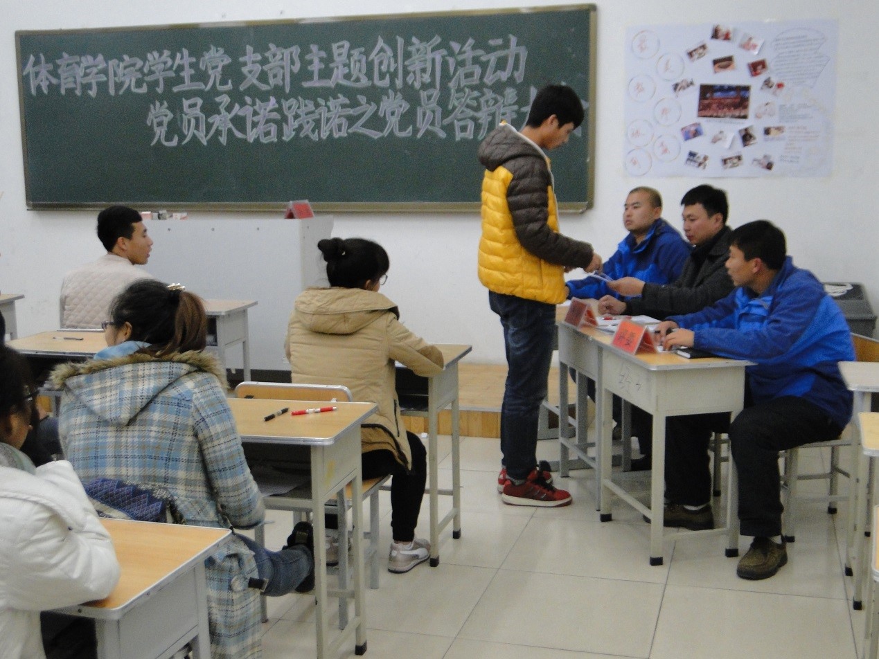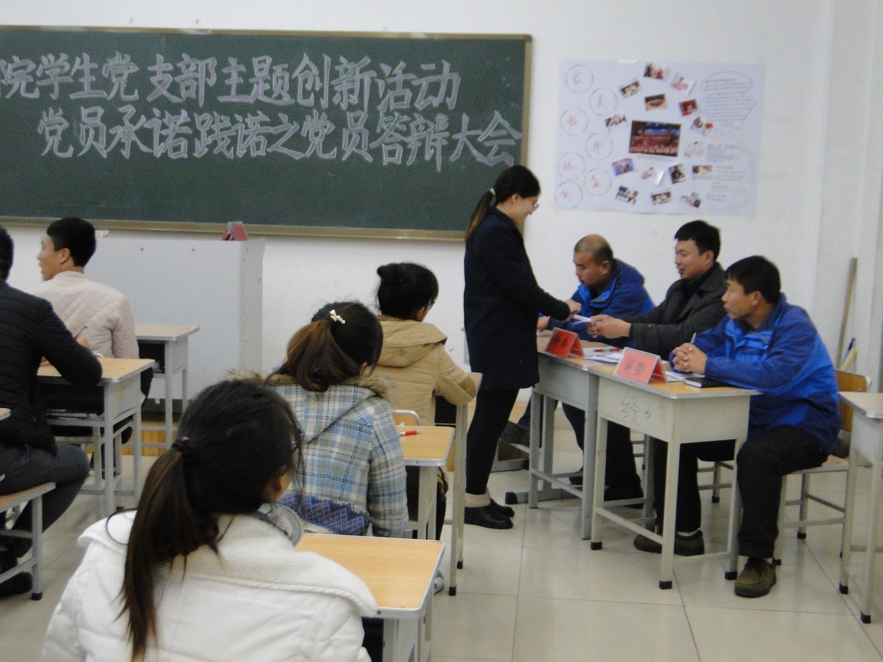 太阳成集团tyc234cc官网员工党支部在开展了系列党小组学习,完成了党员“承诺践诺”研讨会的基础上, 2015年12月16日在主楼123召开了员工党员“承诺践诺”答辩大会,会议由员工党支部书记孙波主持,全体2012级、2013级党员及预备党员参加了会议。员工党员从20道题中任意抽取一题上台进行答题,并结合自己的实际情况进行讲解。答辩推进会现场气氛热烈,每位党员受益匪浅,具有一定的教育意义。