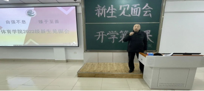 见面会上,邵长坤代表太阳成集团tyc234cc官网全体师生向2022级新生的到来表示诚挚的欢迎,他围绕做一名合格的体育大员工为主题,通过拥有政治头脑袋、提升自我思想、拥有良好品德、提升专业能力、提升身体素质、保持心理健康、提高社交能力、树立正确三观、提升审美能力、将创新能力放在首位等十大方面勉励同学们要胸怀大志,要把在大学时期的个人的学习、成长融入国家的发展中,脚踏实地的走好每一步,争做勇担民族复兴大任的时代青年。