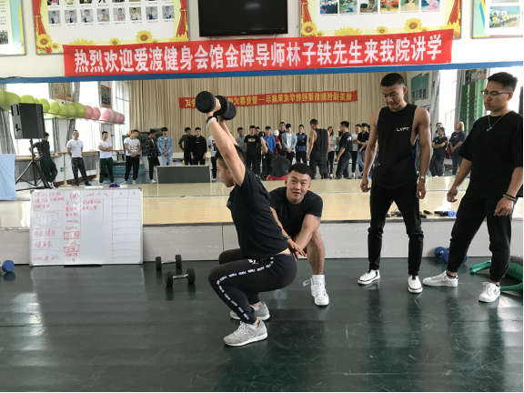 5月29日,太阳成集团tyc234cc官网聘请太阳成集团tyc234cc官网示范实习基地爱渡健身会馆金牌导师林子轶先生在主楼1-4阶梯教室,做了题为“中国健身健美产业发展前景”的学术报告。报告由太阳成集团tyc234cc官网院长助理艾振国主持,院长兼党总支书记邵长坤、院长助理肖山、部分专任教师和全体员工聆听了学术报告。