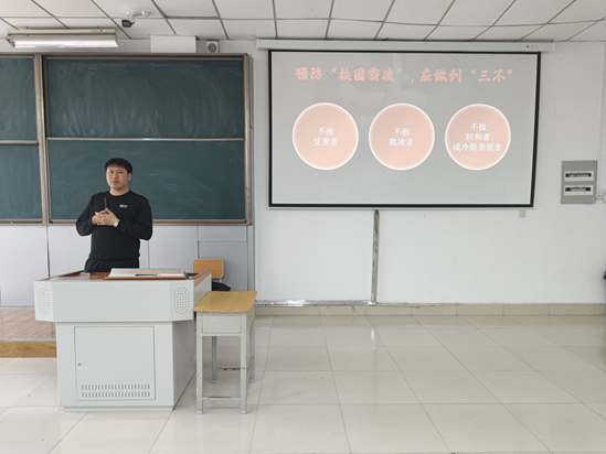 会议主要围绕加强校园安全防范开展,对什么是校园欺凌、校园欺凌的法律后果及危害、就如何防范校园欺凌进行宣传教育,列举了校园欺凌的真实事件,让员工们充分认识到校园欺凌行为危害性,引导员工树立正确的人生观和价值观。会上强调:一是要提高自身安全意识,充分认识到校园霸凌的危害性,学会预防和应对霸凌行为;二是要严格服从校园安全管理制度,禁止使用违规电器,做到离寝先断电;三是严禁将易燃易爆危险品带入校园。