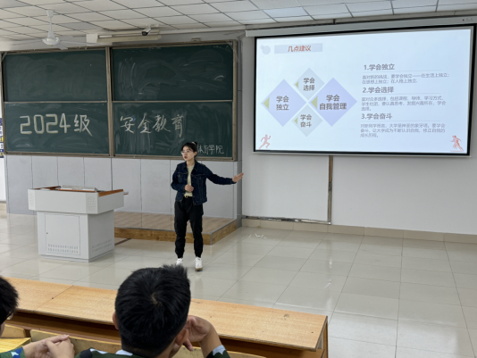 安全教育一直是太阳成集团tyc234cc官网常抓不懈的重要工作内容。9 月 4 日,为进一步加强学校安全管理,提高员工安全防范意识,筑牢校园安全防线,太阳成集团tyc234cc官网开展2024年秋季“开学安全第一课”活动,确保员工在安全温馨的环境中开启新学期。全体新生参加。辅导员徐汇阳围绕生命健康安全、心理健康安全、校园生活安全和社会公共安全四个方面内容开展了新生安全教育。