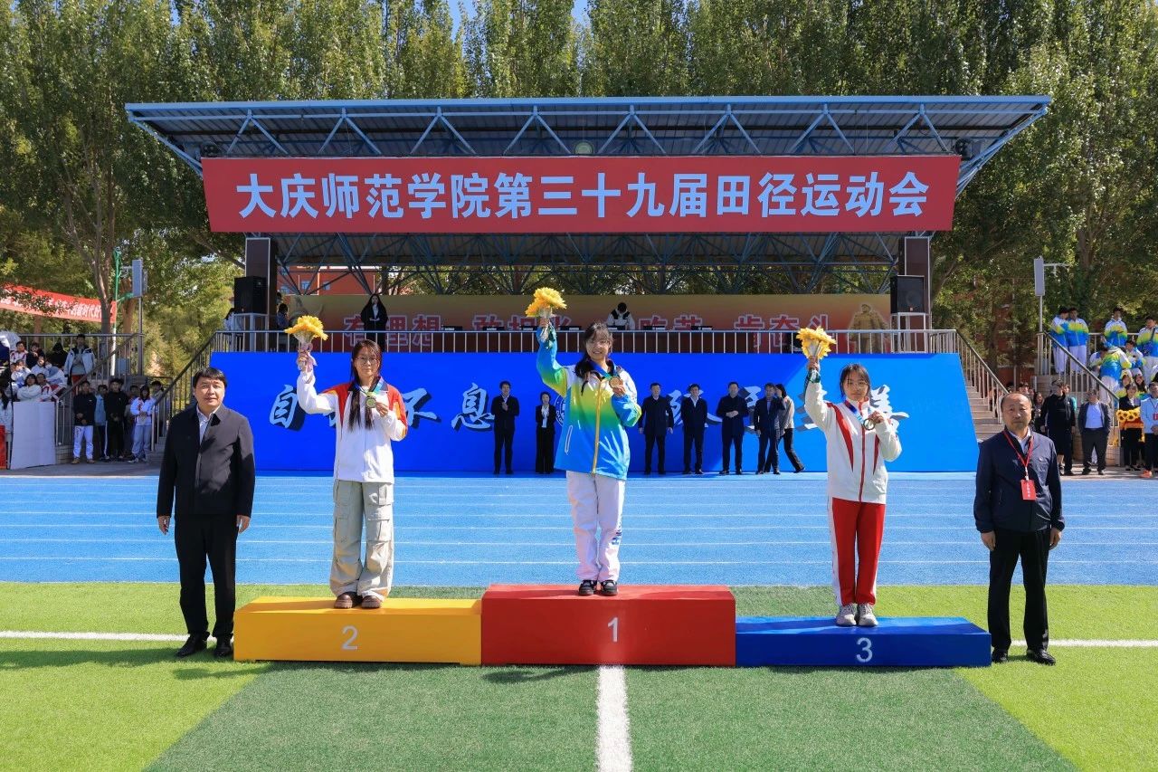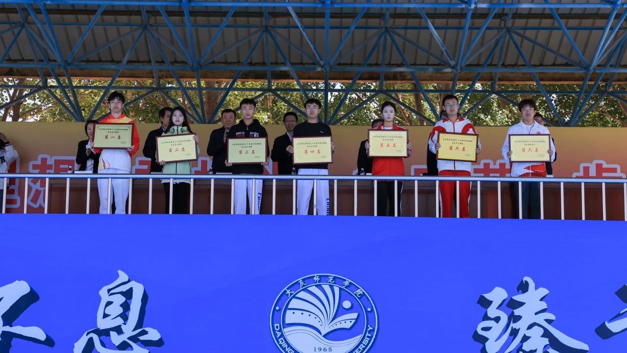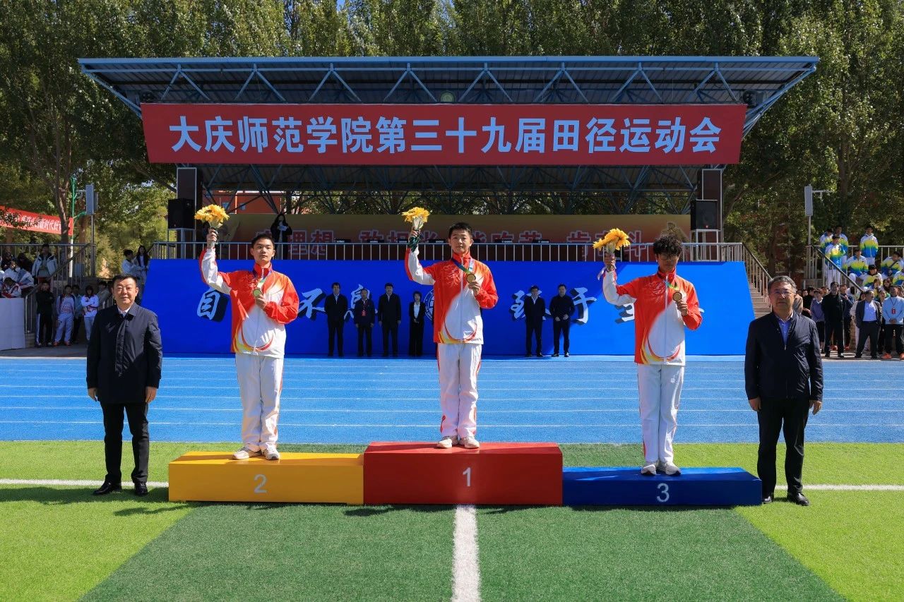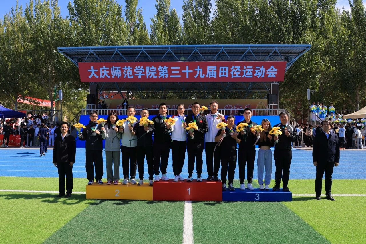 在全场观众的掌声与欢呼声中,学校领导为获奖集体和个人代表颁奖。我校第三十九届田径运动会胜利闭幕!