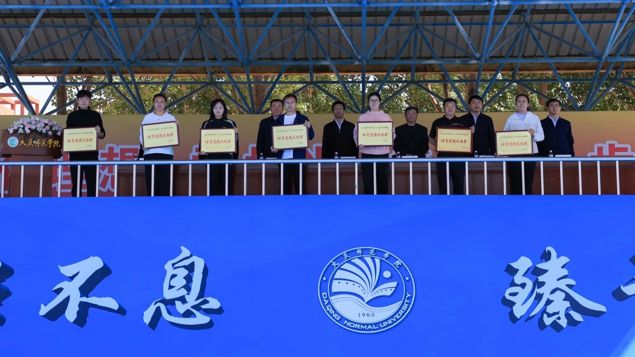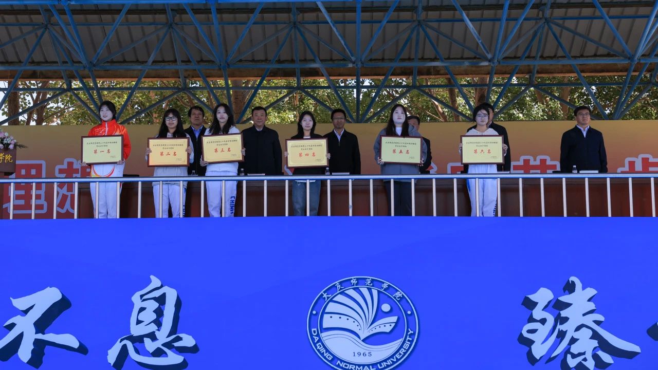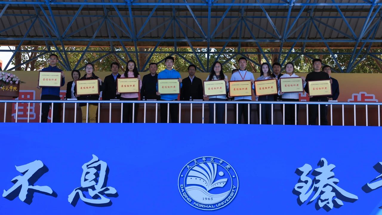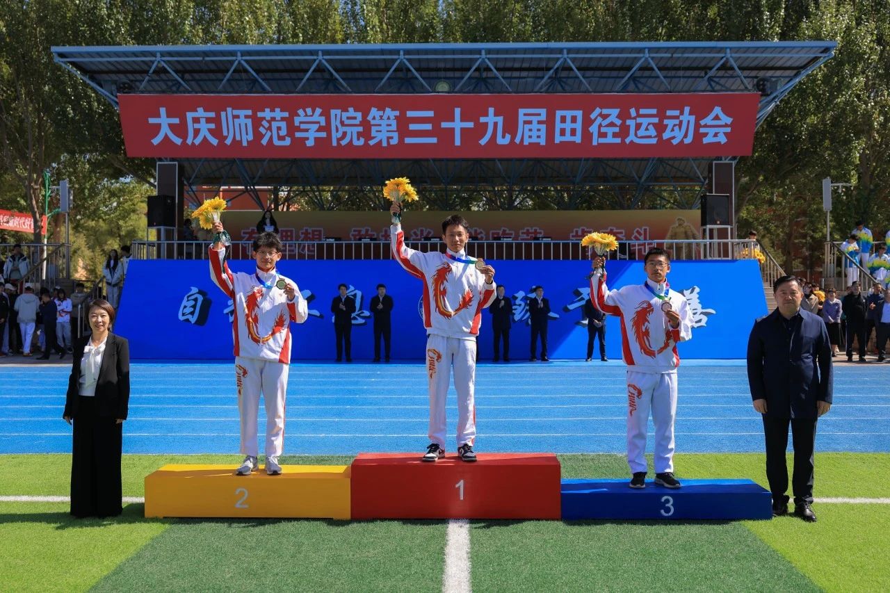 在全场观众的掌声与欢呼声中,学校领导为获奖集体和个人代表颁奖。我校第三十九届田径运动会胜利闭幕!