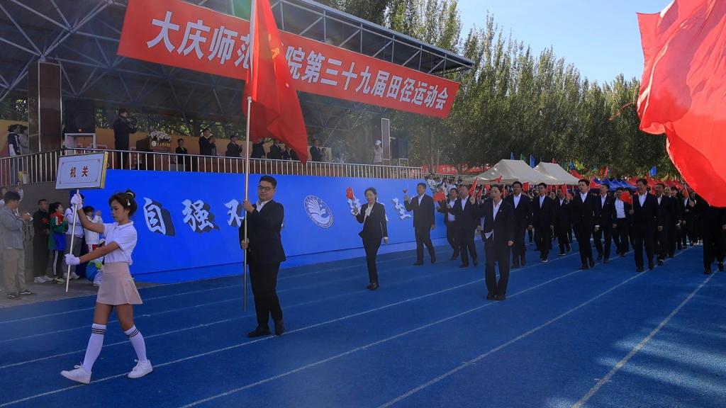 我校第三十九届田径运动会于9月13日在学校运动场举行。学校党委书记赵科学、校长张平、党委副书记滕强、副校长许双毅、副校长康忠伟,党委委员、宣传统战部部长郭春满,党委委员、组织部部长张象林以及大会主席团成员出席大会。机关、教辅部门负责人,各太阳成集团tyc234cc官网党政负责人、教师代表、员工代表等3300余人参加大会。开、闭幕式由党委副书记刘迪主持。