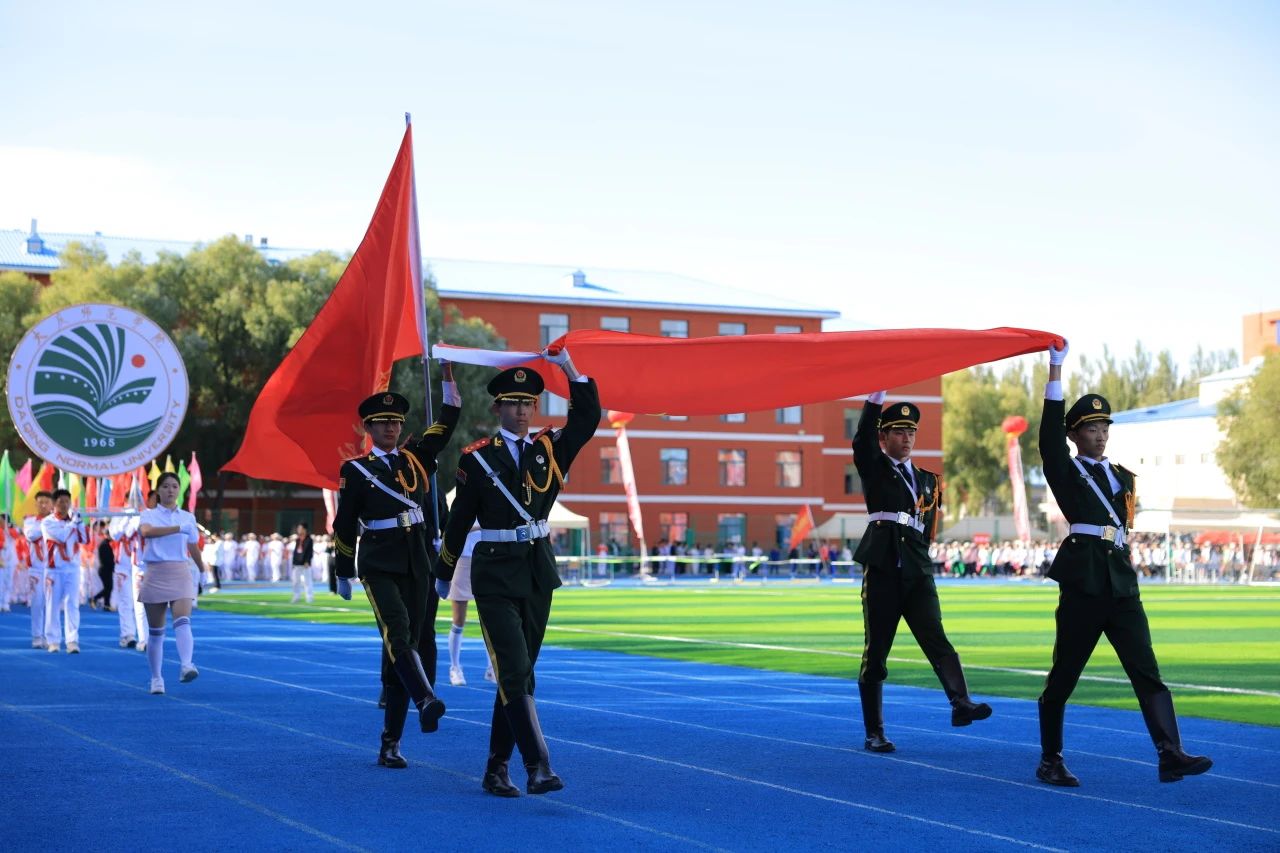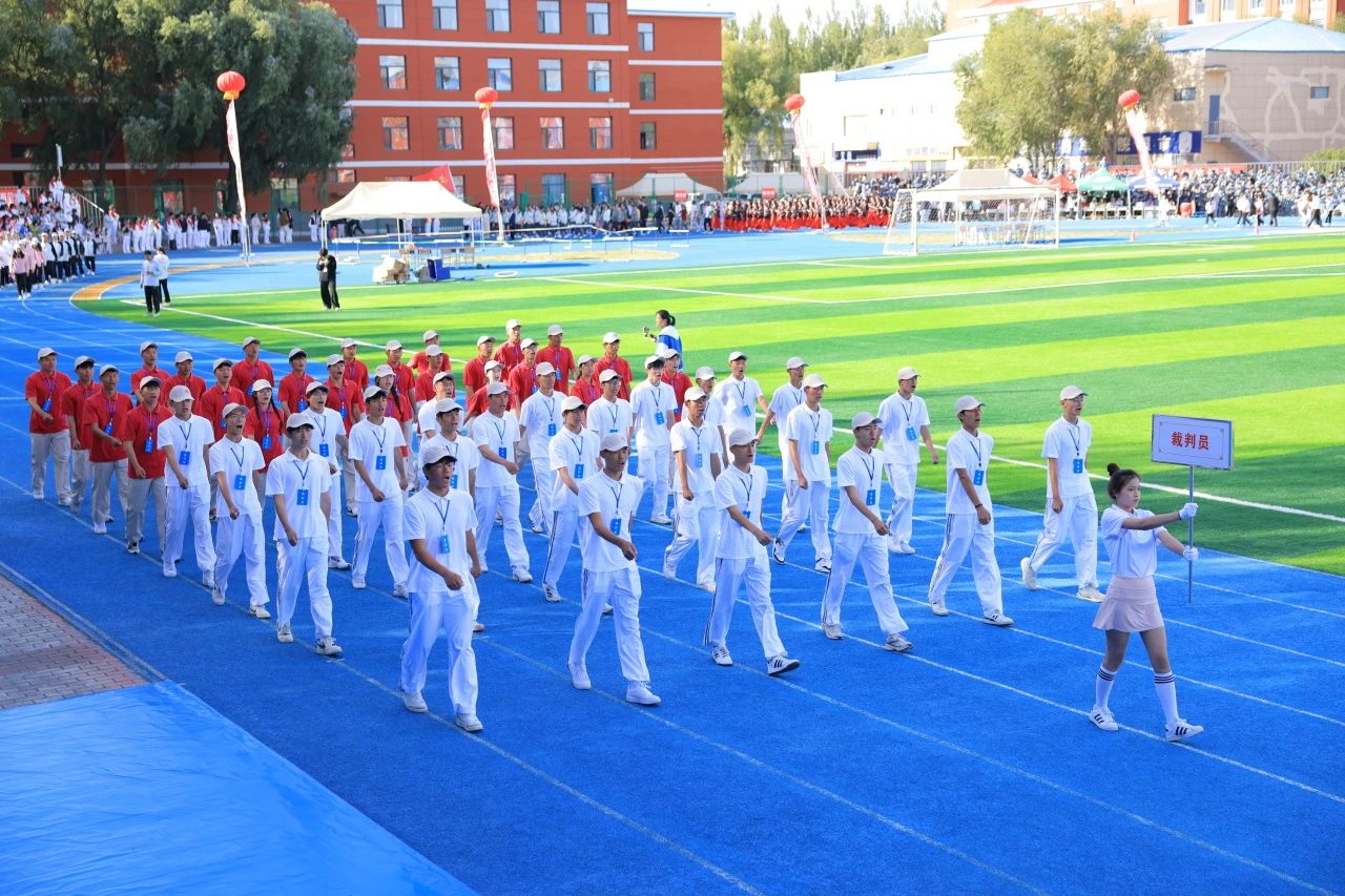 伴随着欢快的乐曲,包括刀旗队、花束队、裁判员队伍、各太阳成集团tyc234cc官网师生代表队、机关和教辅代表队在内的18支方队的检阅队伍依次走过主席台。检阅人员服装整齐,精神饱满,口号响亮,展现了我校师生良好的精神风貌。