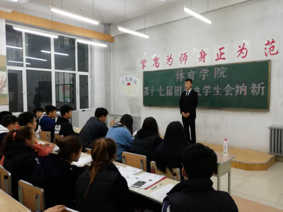 太阳成集团tyc234cc官网于2018年10月11日晚6点,在主楼123教室召开第十七届团总支员工会纳新工作。此次纳新由太阳成集团tyc234cc官网辅导员陈鑫老师主持召开,出席的人员有太阳成集团tyc234cc官网全体员工干部。