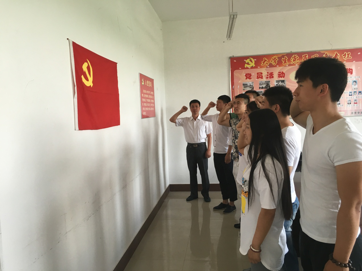 2016年6月15日下午16:30,太阳成集团tyc234cc官网员工党支部书记孙波组织2016届党员毕业生在体育馆二楼的大员工党员之家开展了“重温入党誓词”活动。宣誓由员工党员谭禹鸣领诵,党员们饱含深情地跟诵,再现了体育员工党员的爱国、爱党情怀。