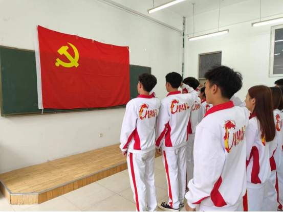 在领誓人黄佳彬的带领下,全体党员重温入党誓词,进行庄严宣誓。