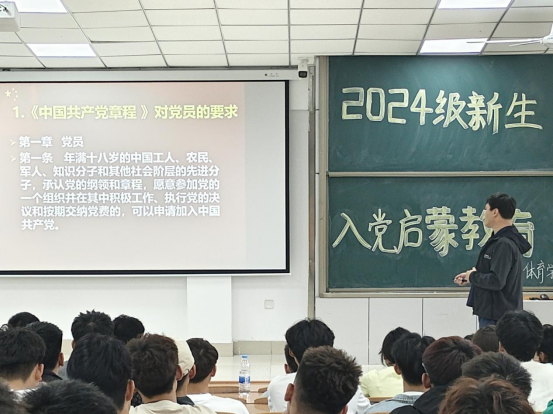 为深化2024级新生对中国共产党的认识,引导他们树立正确的世界观、人生观和价值观,努力培养成为德智体美劳全面发展的社会主义建设者和接班人,9月1日在主楼4-2教室,由团委书记、员工党支部书记陈鑫主讲,辅导员徐汇阳、2024级全体新生参加新生入党启蒙教育大会。