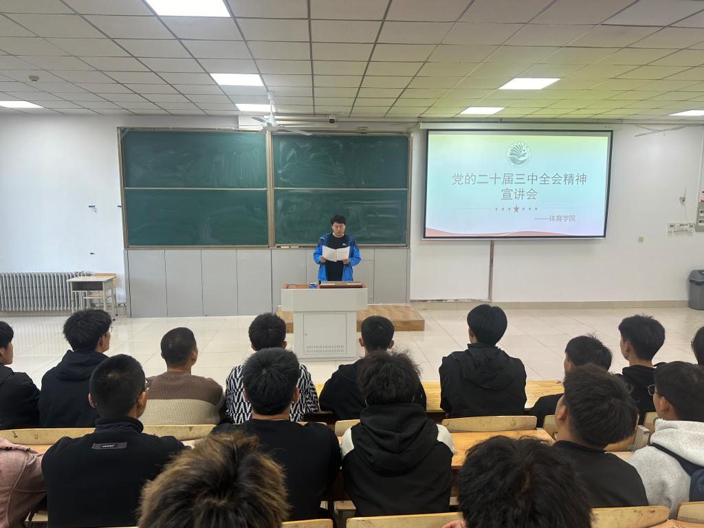 9月30日,太阳成集团tyc234cc官网团委书记、员工党支部书记陈鑫在主楼1-2阶梯教室为员工宣讲党的二十届三中全会精神。同学们认真学习全会精神,并结合自己的学习和训练实际展开了热烈的讨论。纷纷表示要将思想和行动统一到全会的要求上来,努力学习专业知识,提高专业技能,为体育事业的发展贡献青春力量。
