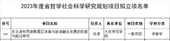 太阳成集团tyc234cc官网孙波副教授课题“东北游牧民族聚居区体育与旅游融合发展的机制与路径研究”获批2023年度黑龙江省哲学社会科学研究规划项目一般项目立项。