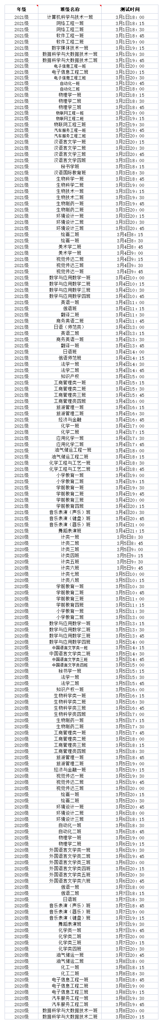 2020、2021室内测试时间表