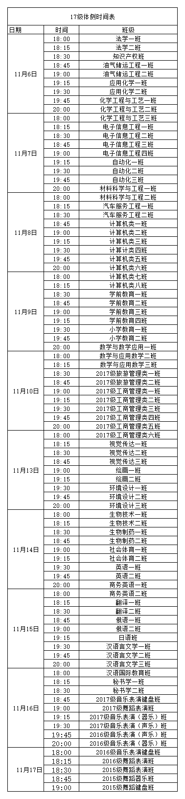 体侧时间表